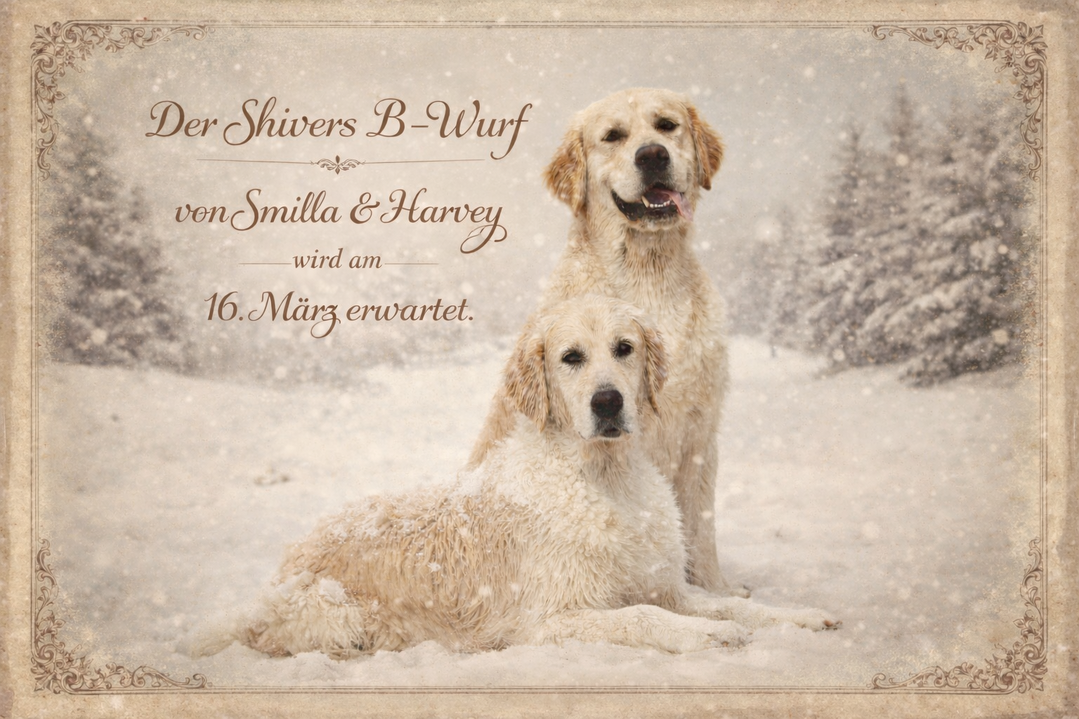 Smilla und Harvey haben mit diesem Wurf schon vor drei Jahren fünf tolle Welpen hervorgebracht. Wir hoffen sehr, dass es diesmal ebenso großartig wird!
